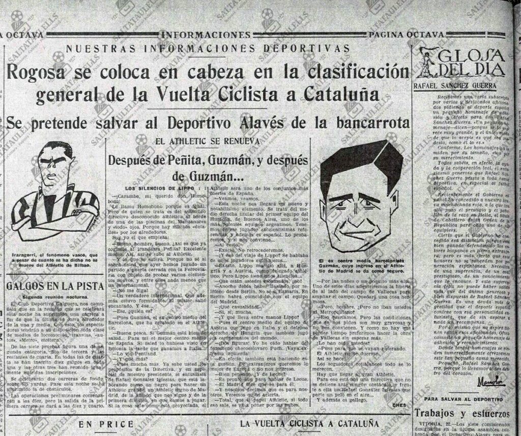 Javier Barroso, el gran ex meta athlético, es una de las figuras más puras y destacadas de nuestro futbol. Caballeroso, entusiasta, inteligente, hizo del deporte una distinción de persona de altos principios, un romanticismo abnegado, una escuela de hombre bien educado. Lo dio todo por su club y por su región. Y cuando exigencias de su carrera le obligaron a apartarse de la vida activa de las canchas, su afecto athlético le llevó a aceptar un puesto en la Directiva del Club rojiblanco, en el que, en unión de Rafael González Iglesias, Cabello, Tonzon ( sic), Galíndez, Urzaiz,  y otros entusiastas sigue colaborando por el engrandecimiento de ese Athlétic madrileño, digno de mejor suerte, merecedor de alcanzar algún día en el éxito la recompensa que la abnegación y el sacrificio de sus dirigentes merece. Y habrá de alcanzarla, que el Athlétic es un club de rancia solera madrileña y a su porvenir debemos coadyuvar cuantos sin “ ismos” odiosos deseen la prosperidad de esta región Centro, sobre la que parecen cernirse mil odios injustos desatados.