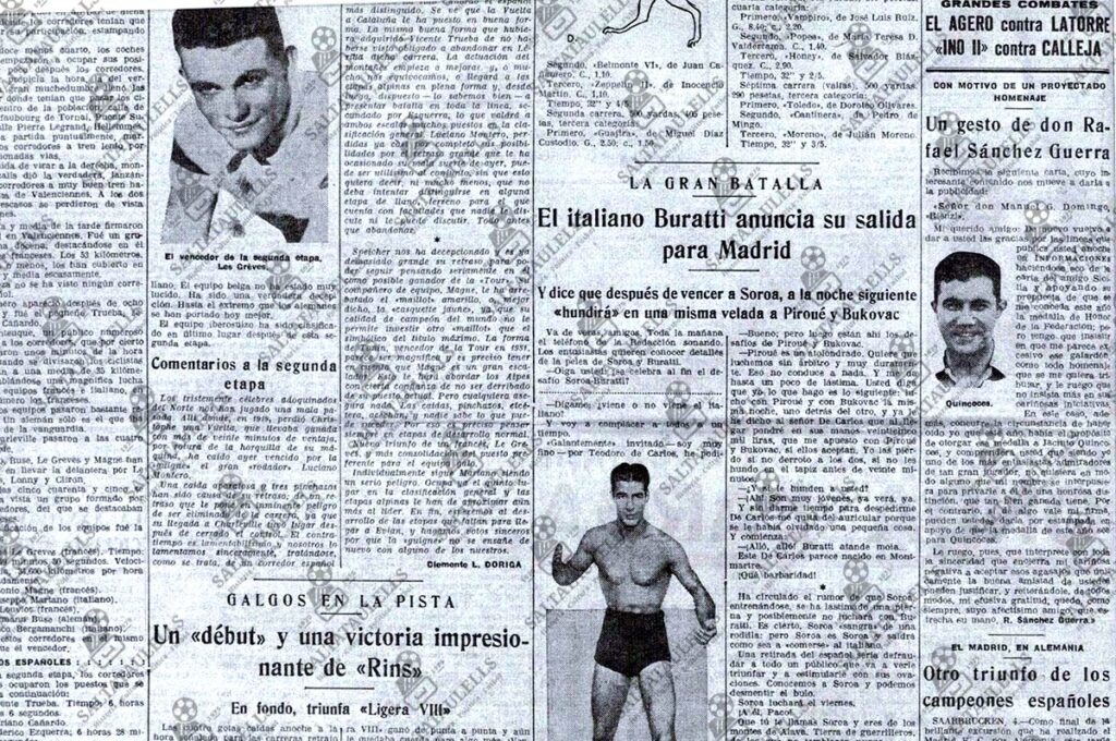 En la misma página hay una noticia de un posible combate de boxeo en Madrid entre Max Baer y Paulino Uzcudun que firma Manolo Mejala.