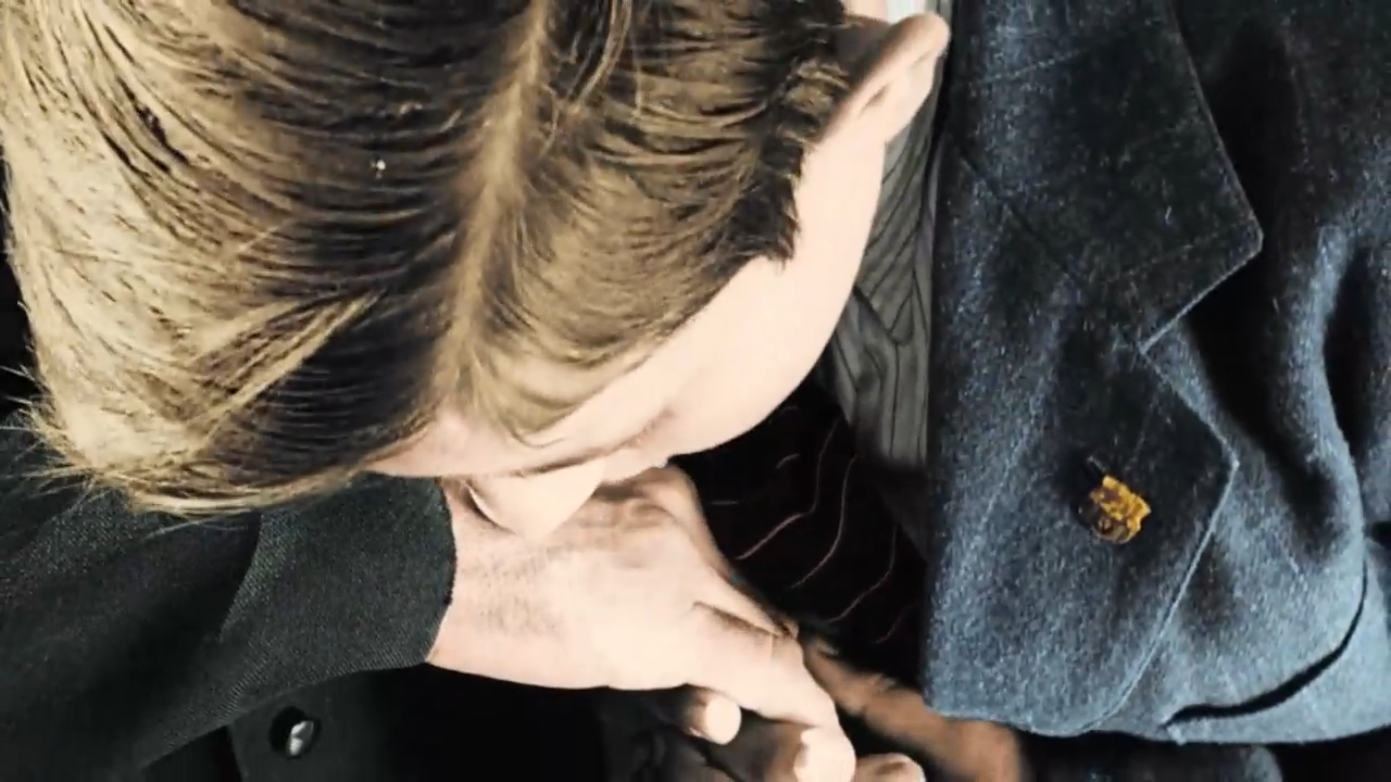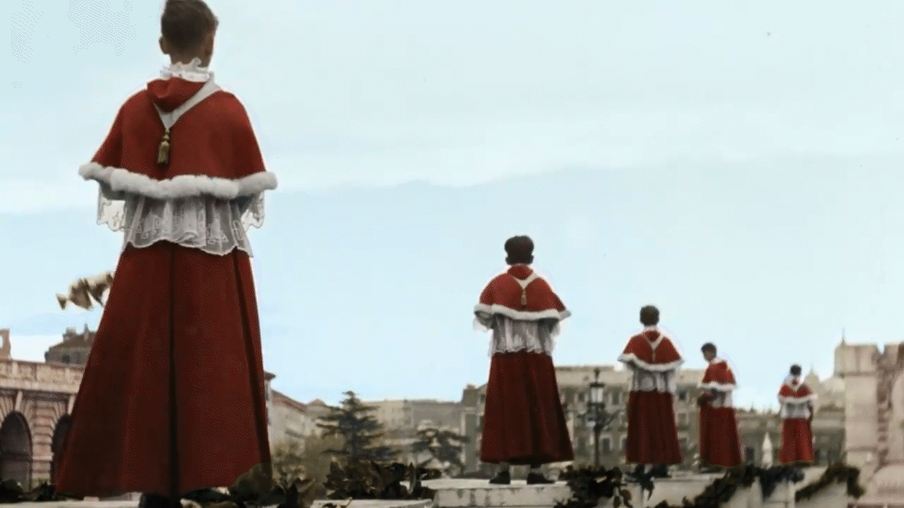 Final propagandístico clásico: El niño, regenerado por el sistema aparece bien vestido, limpio, peinado…besando la mano del sacerdote.