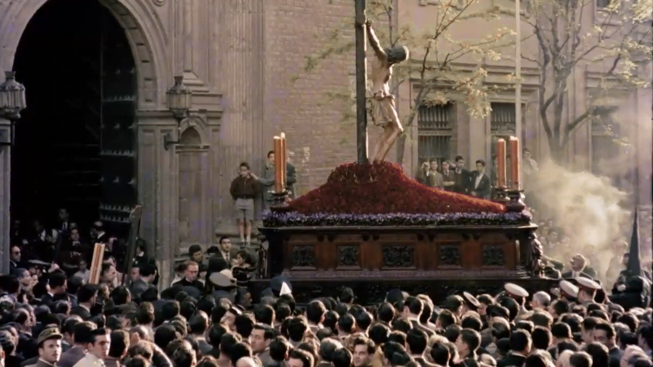 Un momento antes de lo anterior salen unas imágenes de futbol, toros y espectáculos, como las tres cosas que tenía el franquismo entretenido al personal.