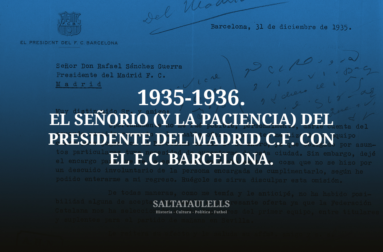 • 1935-1936. EL SEÑORIO (Y LA PACIENCIA) DEL PRESIDENTE DEL MADRID C.F. CON EL F.C. BARCELONA.