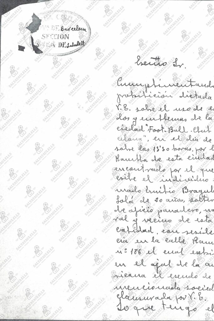 Inactivo y proscrito, porque el FC Barcelona prácticamente se convirtió en un club al margen de la ley, como lo demuestra una curiosa anécdota protagonizada el 3 de agosto por un sabadellense llamado Emili Bragulat, detenido por la policía bajo la acusación de pasear por la Rambla de Sabadell luciendo una insignia del Barça