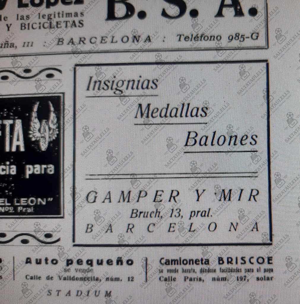 A pesar del exilio anterior, Gamper no fue censurado en un anuncio comercial de su empresa con Mir, que se puede ver durante todo el año 1925 en Stadium, en sus números mensuales de los días 15.